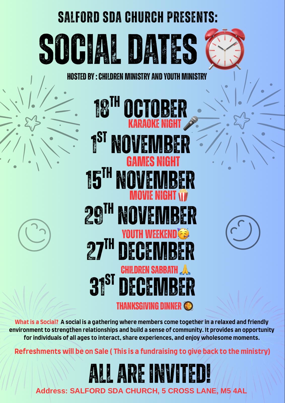 Saturday from 17th May 9:30am to 1:30 @ Salford Church SDA.