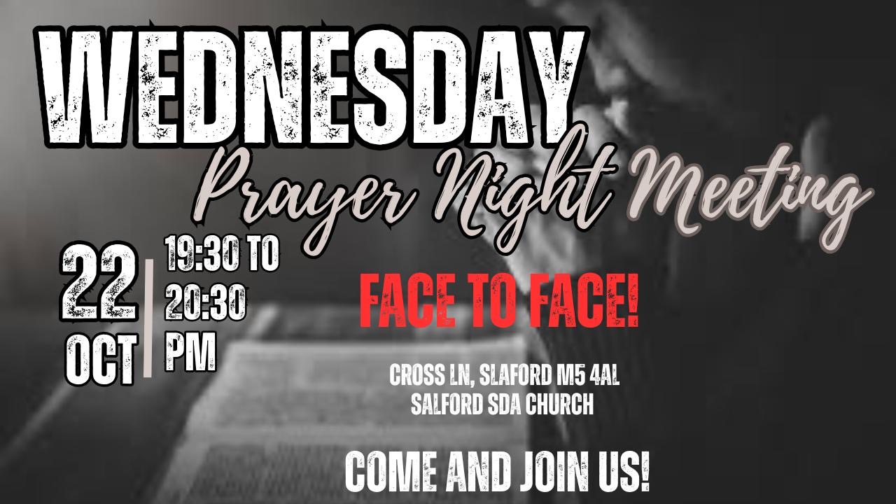 Salford SDA Prayer Meeting will be in the sanctuary this Wednesday and once a month from then on. See you and your guest.
